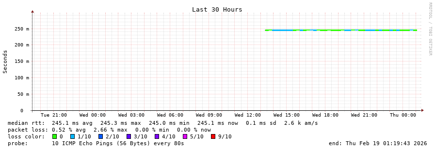 18 > 175.111.178.107 (175.111.178.107) [AS134090] 245.235ms 244.870ms 244.934ms